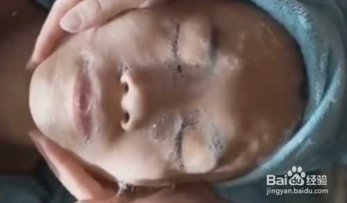 接下来,过一段时间后,我们直接将面巾纸从我们的面部上取下来(注意,要紧贴着面部取下来,这样可以把面部的芦荟胶一并带走);
