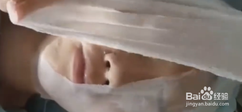 接下来,在我们涂抹完毕芦荟胶后,我们用面巾纸直接覆盖在我们涂抹芦荟胶的面部(注意要全部覆盖住);