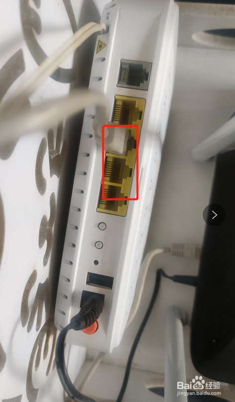 硬件连接,将光猫的黄色接口和路由的WLAN接口用网线连接,路由器和电脑用网线连接,并插上电源。
