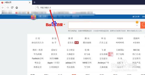 打开电脑中,火狐浏览器在地址栏输入192.168.1.1。