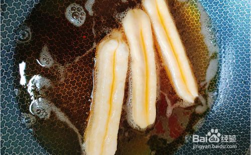 锅内倒入适量的油,7成油温放入油条,先小火,待油条慢慢膨胀,这时候可以用筷子来回翻动,也可以轻轻晃动油锅,等油条表面定型不再膨胀并且漂浮起来就可以适当增加火力让其着色