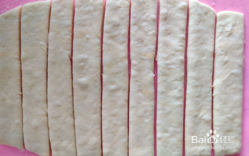 发好的面不要排气,直接擀成将近1厘米厚的饼状,然后平均切成条备用