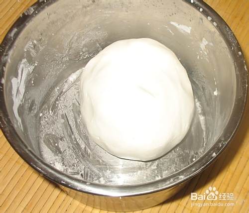 将糯米粉用温水和成干面团,和面时加入少量桔子汁调味、调色。