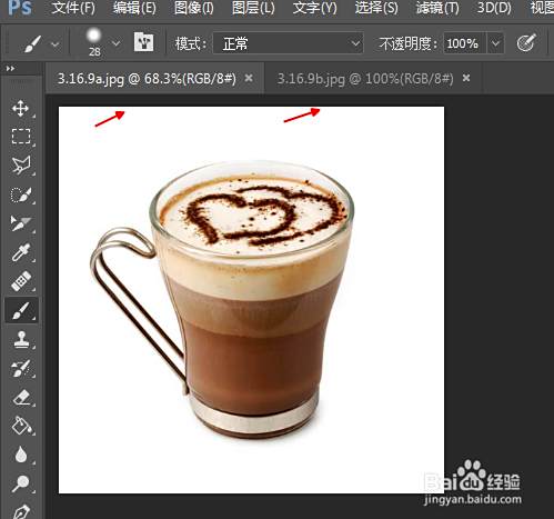 首先我们要准备的素材就是一个杯子还有一个图像,现在我们来打开ps软件进入界面,打开快捷键CtrI+O选中两张素材导入。