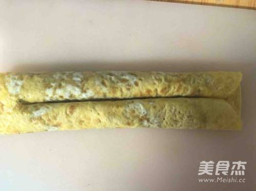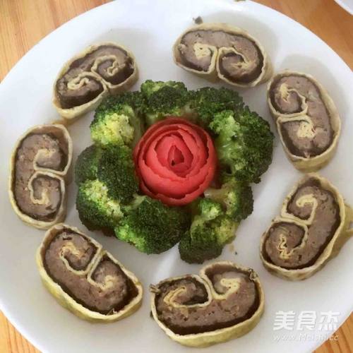 8将蒸熟的蛋皮卷晾凉后如图切段,摆在盘中,大功告成!