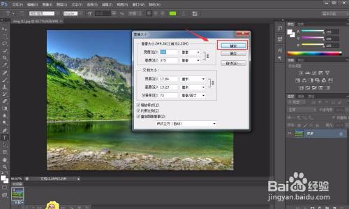 在“图像大小”对话框里输入需要修改的尺寸大小,我这里都改成500与375。