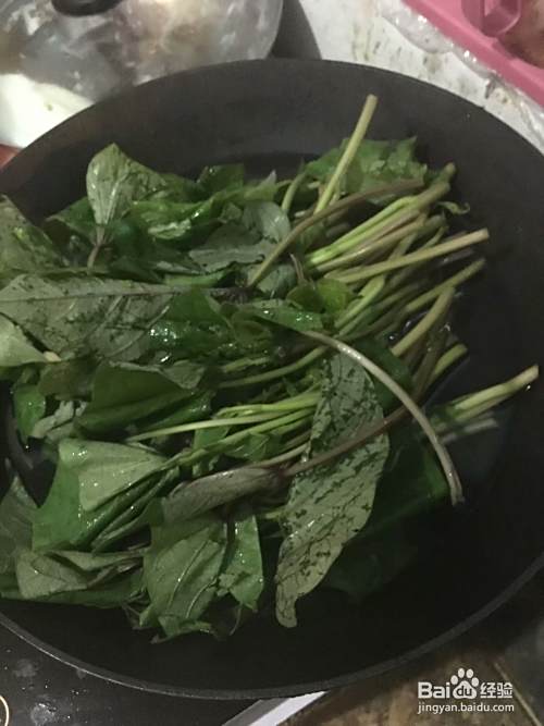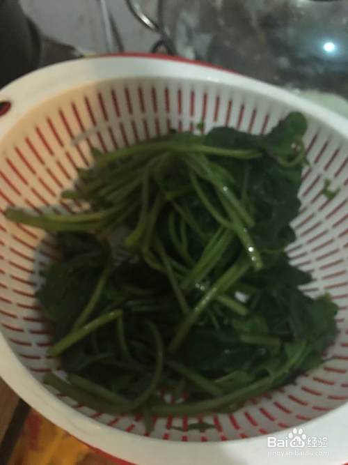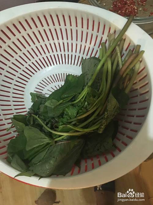 首先是准备红薯叶,将红薯叶洗干净,由于红薯叶是长在地上的,上面不免会出现一些泥土或者小青虫,洗的时候需要注意将这些清理干净,