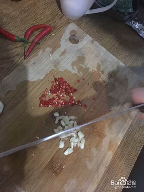 可以将糊辣椒切的,特别是这样吃起来比较好一点,将大蒜拍碎,然后再切,尽可能的切碎,