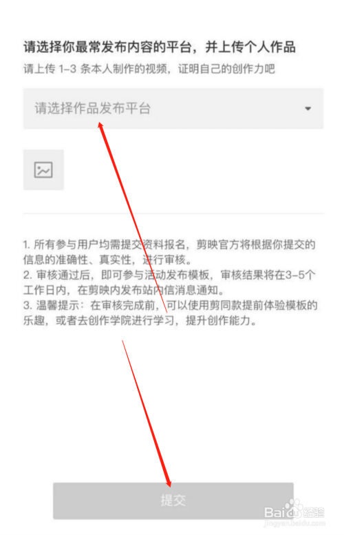 第六步、选择你要发布的作品,然后确认内容无误后,点击下方的提交即可,后面审核通过后就可以创作模板赚取收益了