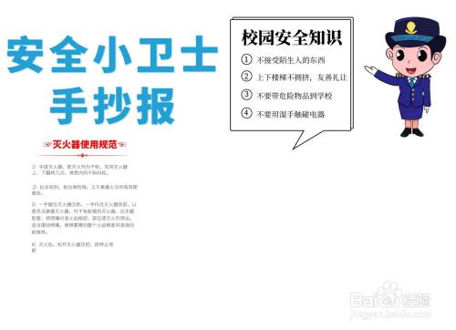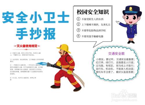 在安全小卫士手抄报标题的下方写上灭火器使用规范的文案内容。
