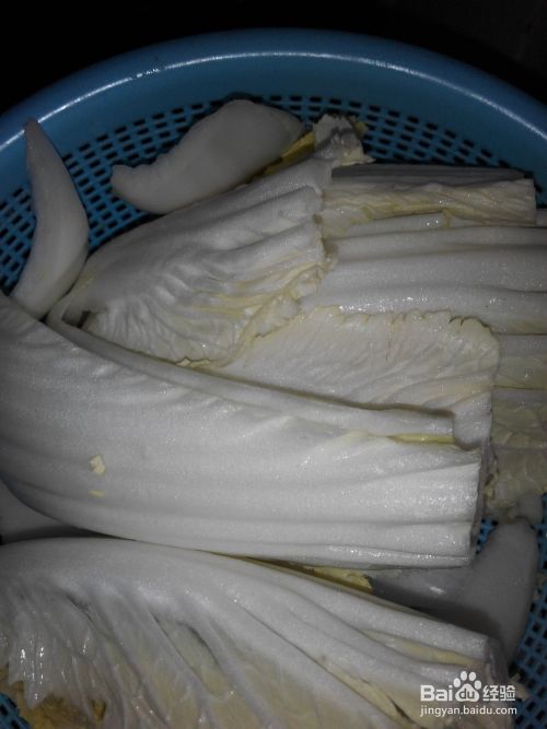 然后,将买回来的白菜清洗干净,晾干备用。