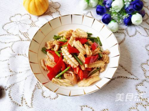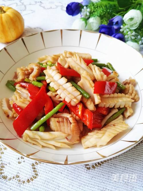 鲜鲜嫩嫩的蒜苔炒鱿鱼,吃一口就觉得爱上它了。我想它会成为我们家餐桌上的常客啦。。。。