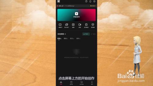 在新界面中,点击屏幕上方的开始创作,进入素材选择界面。