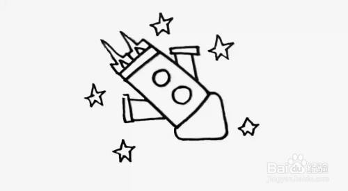 在小火箭周围画上五角星的装饰物。