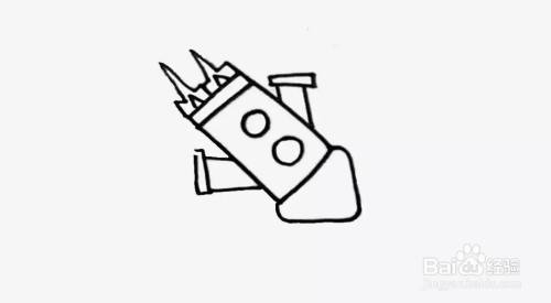 画上两个小圆装饰机身,并且在尾端画上一个小的长方形。