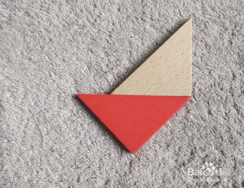 将红色三角形斜边水平居于顶部,放在本色三角形的下面挨着,右顶点共点。