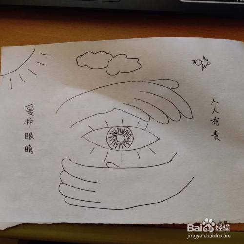 最后写上保护眼睛,人人有责的字样。表示眼睛是我们最直观感受这个世界的器官,我们必须要保护好它