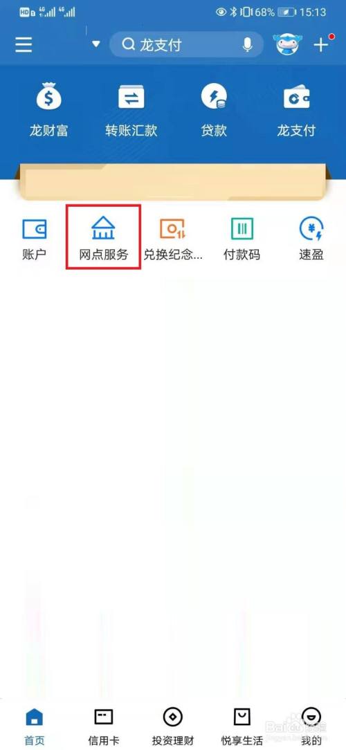 在中国建设银行应用首页,打开【网点服务】。