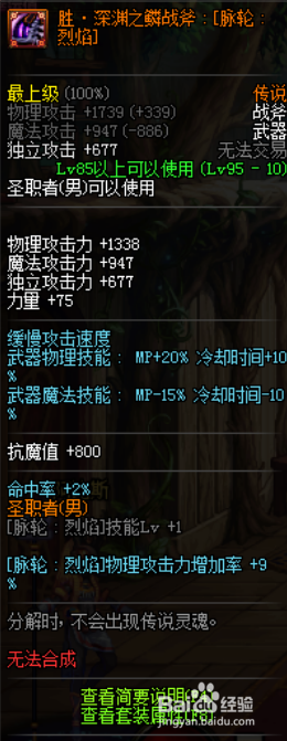 如果选择脉轮烈焰的话,我们就是选择深渊之鳞战斧,需要满属性的,带胜字的