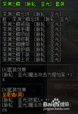 然后我们的防具9件套也是直接选择脉轮圣光的,如图所示