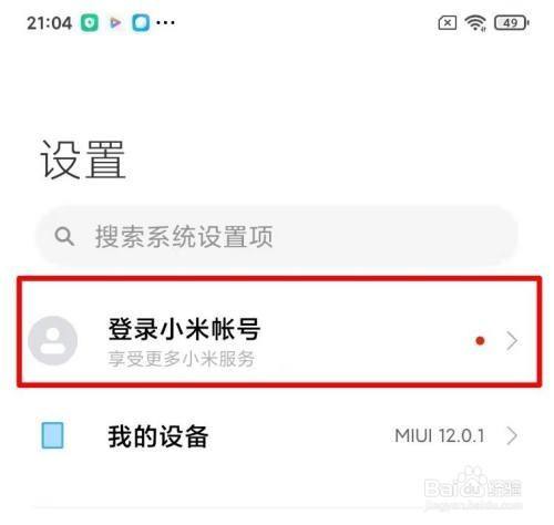 进入手机设置,点击登录小米账号。
