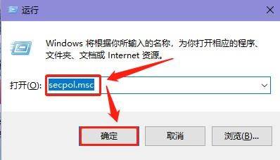 然后在打开的对话框中输入【secpol.msc】并点击【确定】。