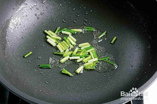 炒锅留底油,中火加热至5成热时放入葱段煸出香味。