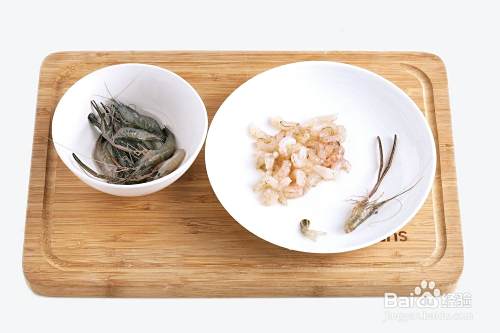 河虾耐心地剥去外壳,取净肉,放入碗中洗净。