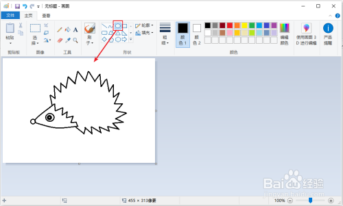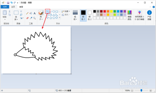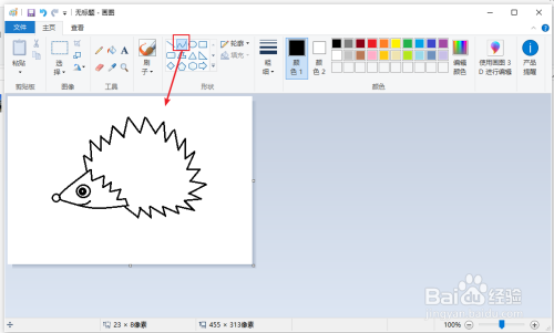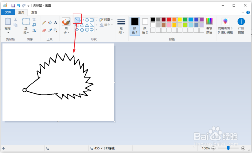 用【曲线】画一条曲线,和第一条曲线连接一起,构成刺猬的头脑。
