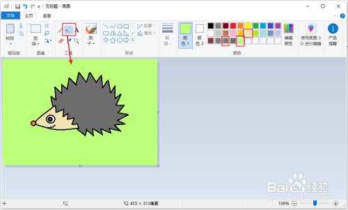 用【颜料】涂色,这样刺猬就画好了。