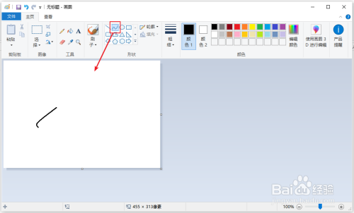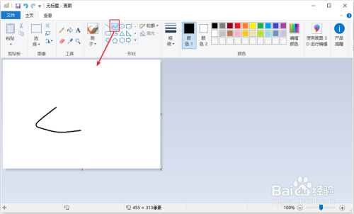电脑打开画图工具,用【曲线】画一条曲线。
