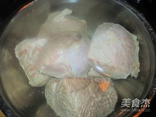 4把牛肉放进冷水里浸泡一个小时,沥干