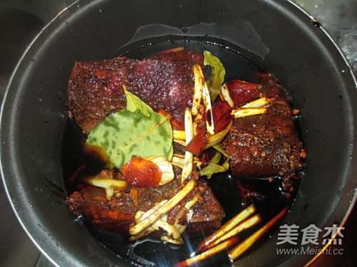 15如果腌过的汤汁不够的话,再加一点水,一般要浸过牛肉的一半
