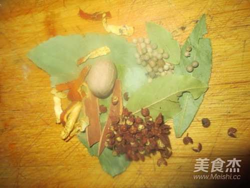 5准备好香叶、八角、桂皮、肉蔻、陈皮、白胡椒