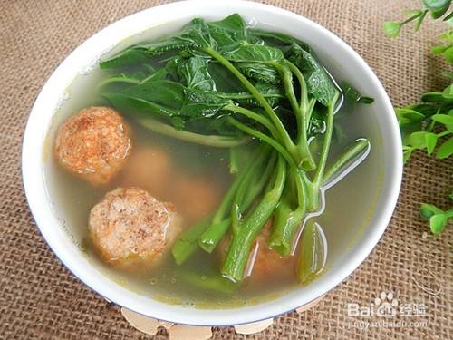 从小经常吃空心菜,夏天里的好时蔬哦。空心菜也叫通菜、蕹菜性寒,根,性平、味甘,含蛋白质、脂肪、维生素B1、B2、维生素C等,有清热凉血、利尿解毒的作用。空心菜属于性寒、滑利的食物,因此体质虚弱、脾胃虚寒、腹泻的人不宜多食。前几天做了些肉圆,用它来做汤清香不油腻。