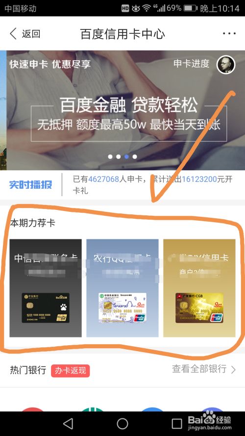 此时界面转入百度信用卡中心,可以直接点按本期力推卡中的某一个进行办理。