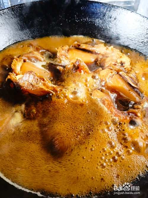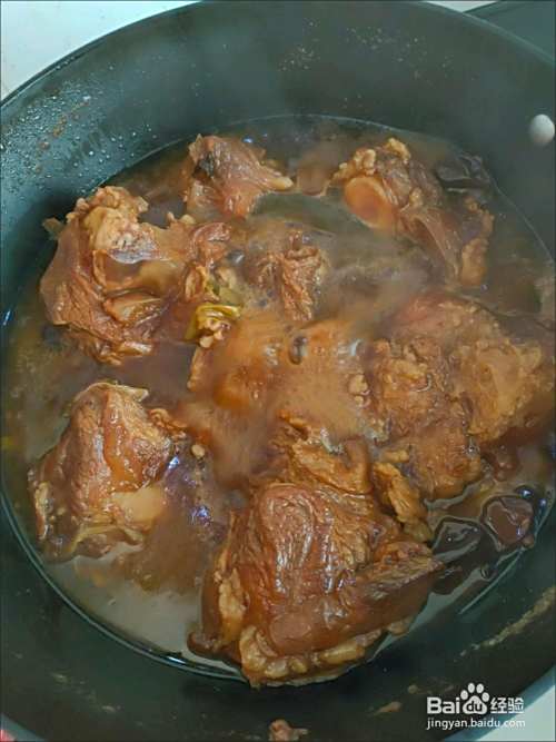 清洗干净放入锅中,放入姜片、料酒、桂皮、香叶、花椒、八角、盐、冰糖、生抽、老抽进行炖煮