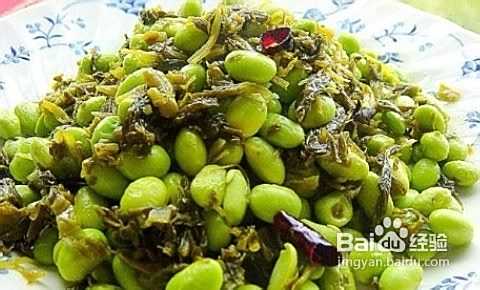 雪菜炒青豆。雪菜洗净切末,青豆用水焯一下,捞出沥干。锅内倒油烧热,加蒜末爆香,然后先炒青豆。等豆子有些软之后再放入雪菜炒匀。尝过咸淡后再酌情加盐、味精调味即可出锅。