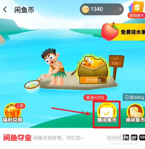 在闲鱼币页面中,点击赚闲鱼币选项,就可以进行签到。