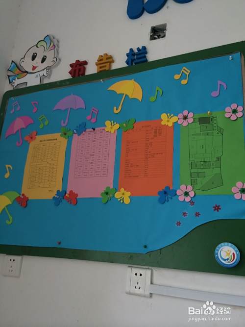 布置布告栏,表格用彩色A4纸打印,颜色更加醒目。配上卡通的雨伞造型,很可爱。