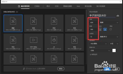 打开PS,新建一个600×300像素,分辨率为72DPI的文档。