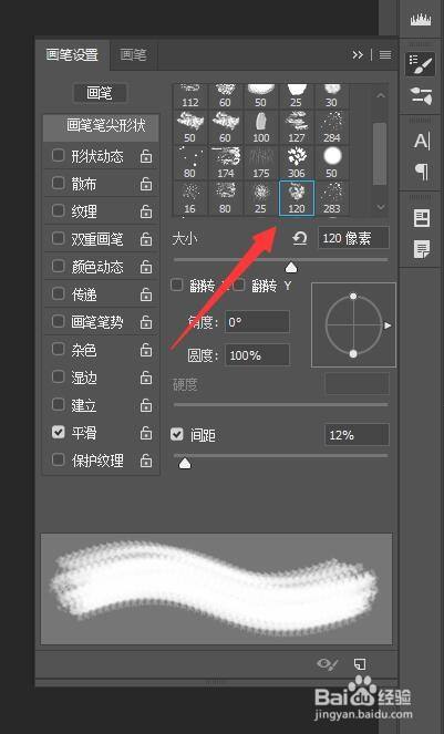 点击画笔工具,选择一个碎片式画笔,设置前景色为黑色,在形状图层边缘描绘,使形状边缘出现参差不齐的斑驳感。