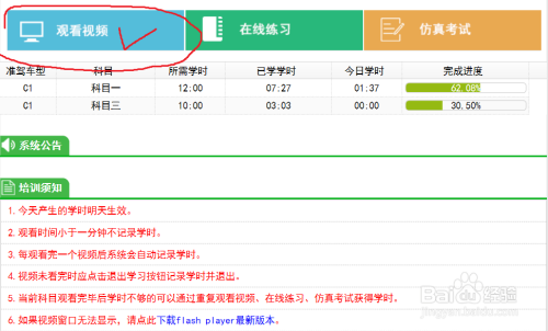报名建档成功后,驾校会给一张学习卡,登陆上面的网址。
