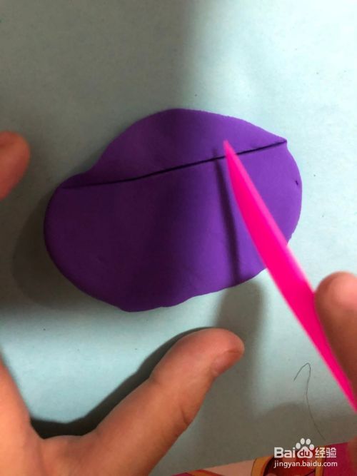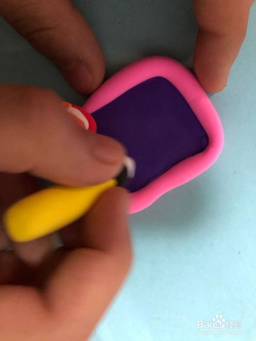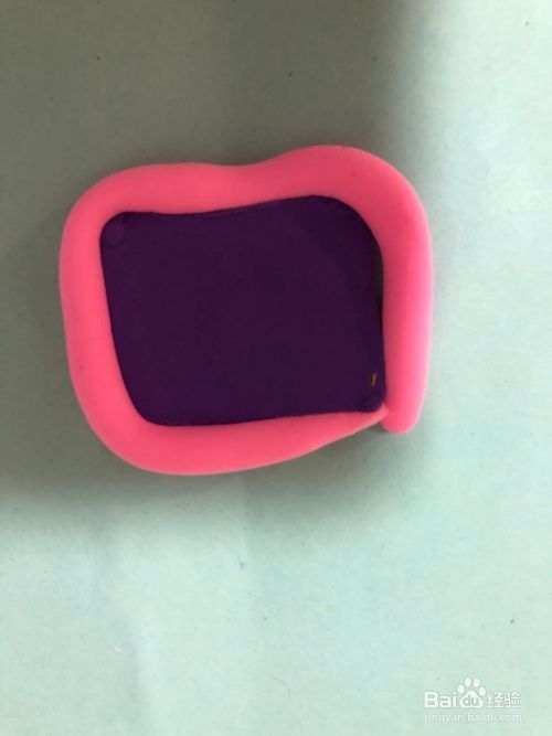 拿出蓝色的彩泥揉成圆形,按扁用小刀切成正方形,在拿出粉色的彩泥。