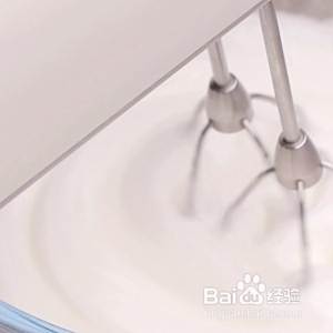 将蛋白与蛋黄分离。蛋白用电动打蛋器打到起鱼眼泡,加入2勺白砂糖,打发至硬性发泡。
