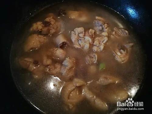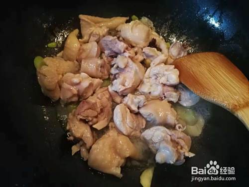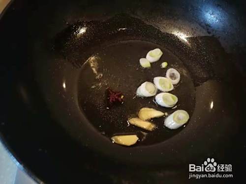 锅中倒花生油,油微热,放葱姜八角爆锅。