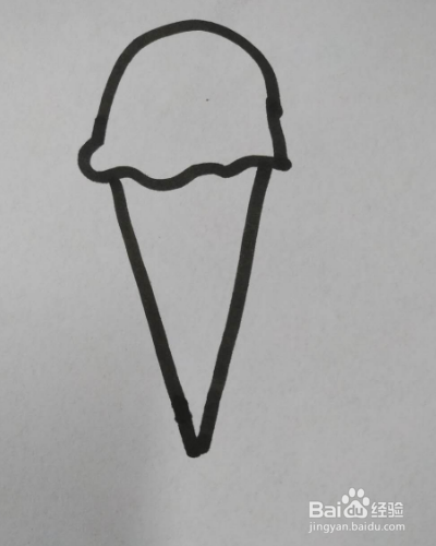 然后在冰淇淋筒的上方画出冰淇淋,冰淇淋的上端呈半圆形。