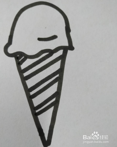 在冰淇淋筒上均匀地画出另外的双斜线。