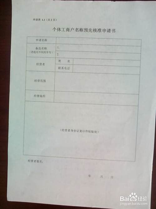 到辖区工商部门领取《个体工商户名称预先核准申请书》填写上边的相关信息后交给工商的工作人员