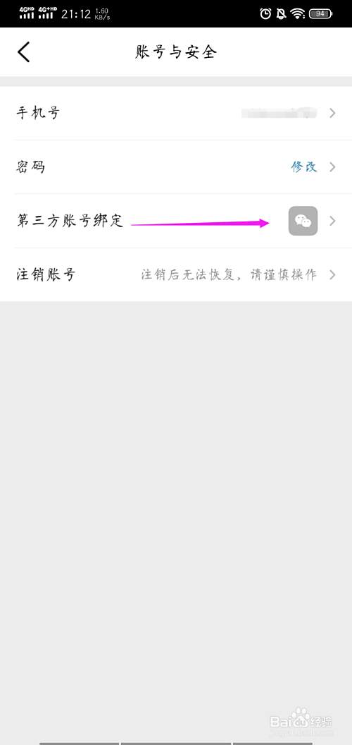 在账号与安全页,点击“第三方账号绑定”绑定微信即可